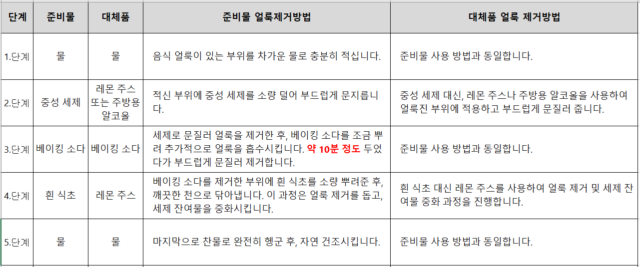 ※ 대체품을 이용한 얼룩 제거방법